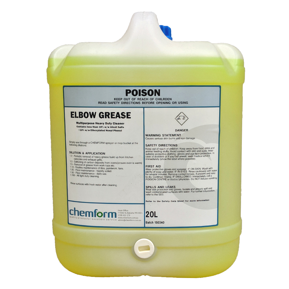 Elbow Grease 20L provides bulk heavy-duty cleaning for high-demand kitchens, industrial sites, and workshops. Its concentrated alkaline formula cuts through stubborn grease and grime, leaving surfaces clean and safe. A reliable bulk cleaning solution for large-scale operations