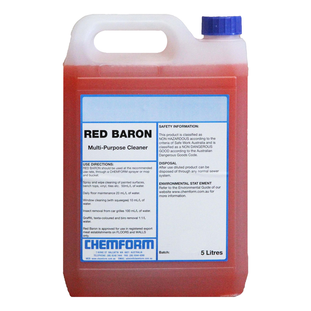 Red Baron should be used at the recommended dilution rates through a Chemform sprayer or by damp mopping techniques.