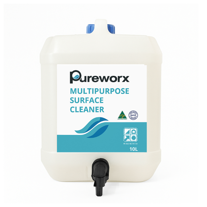 Pureworx Multipurp Environmentally Safe Cleaner in the 10L refill offers a cost-effective, high-capacity solution for commercial kitchens, hospitality venues and businesses that require consistent, food-safe cleaning. Manufactured locally in Wangara, WA, Pureworx uses only purified water and mineral salts processed through electrochemistry to create a powerful high-pH cleaner that breaks down grease, grime and bacteria without harsh chemicals.