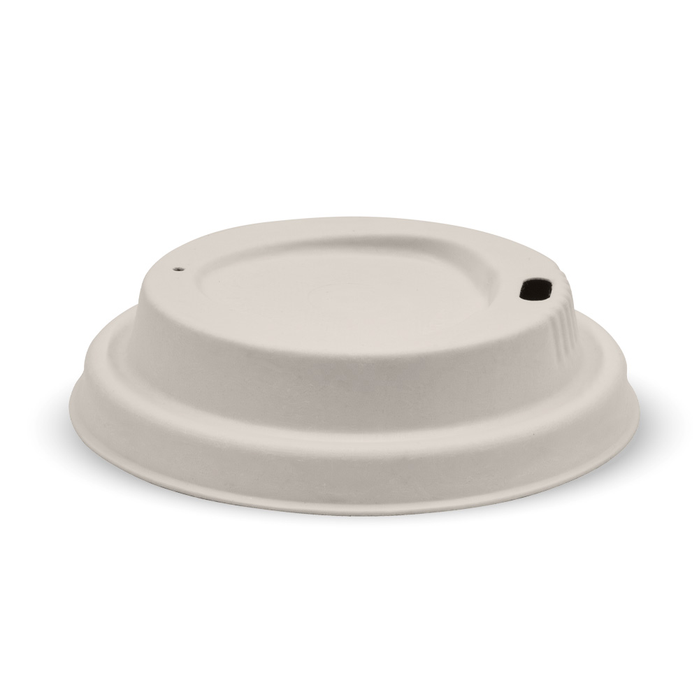 BioPak's 8oz Natural Plant Fibre Coffee Cup Lids are crafted from sugarcane pulp, offering the same strength and security as plastic lids but with a far lighter environmental impact. Certified home compostable (AS5810), these lids feature a lower profile and improved pulp strength for durability against hot drinks. PFAS-free and renewable, they’re the eco coffee lid solution.